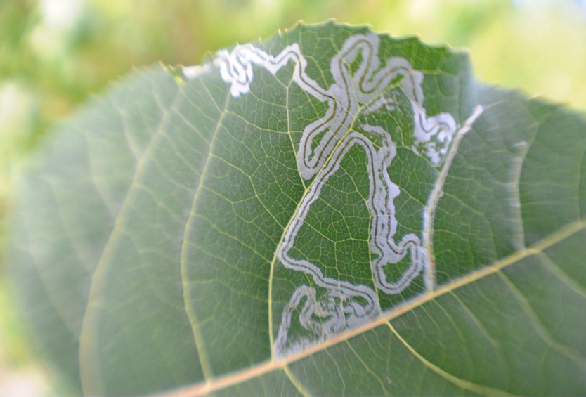 The track marks on the leaves indicate eggs are being laid. Sometimes the leaves will show tracks from the tunnels (galleries) eaten by the maggot. The leaves will curl and collapse.